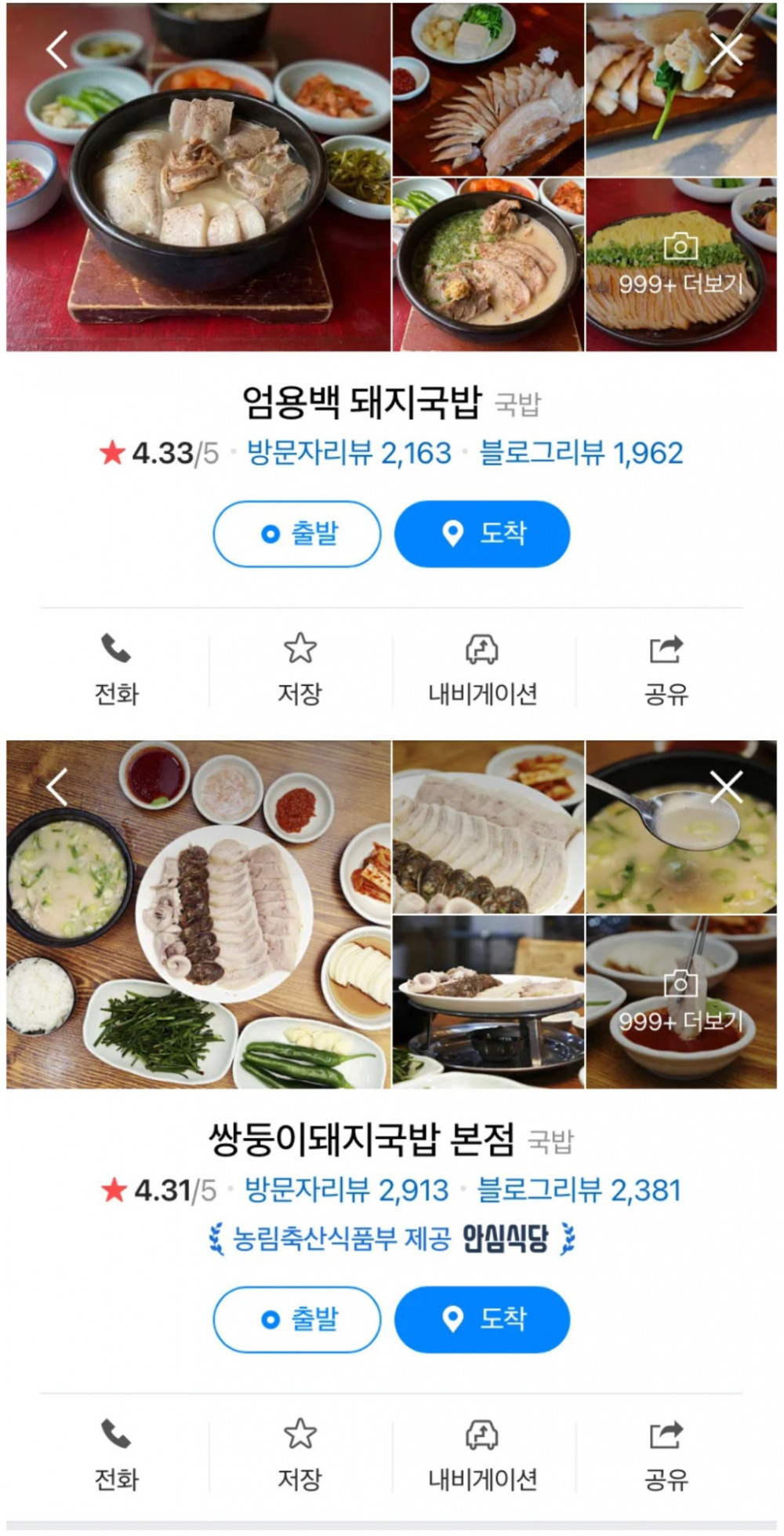 부산 유명 돼지국밥집들 방문자&블로그 리뷰 갯수