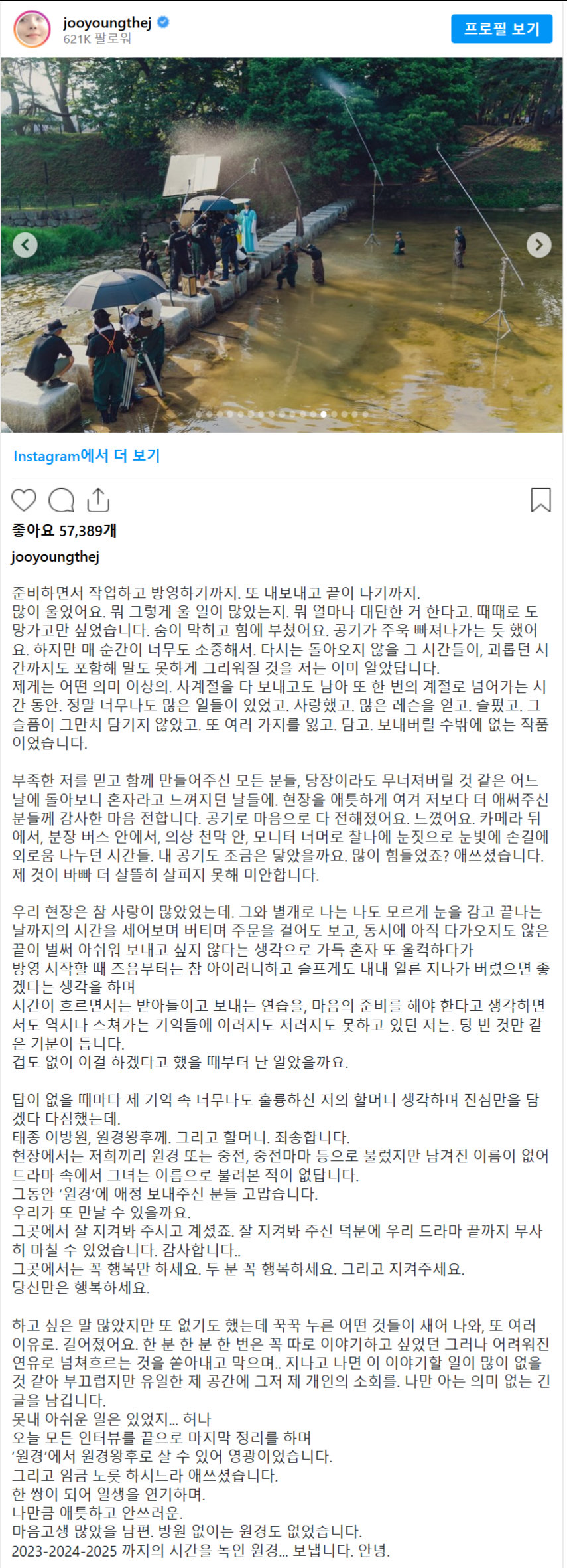 배우 차주영 인스타에 올라온 장문의 글