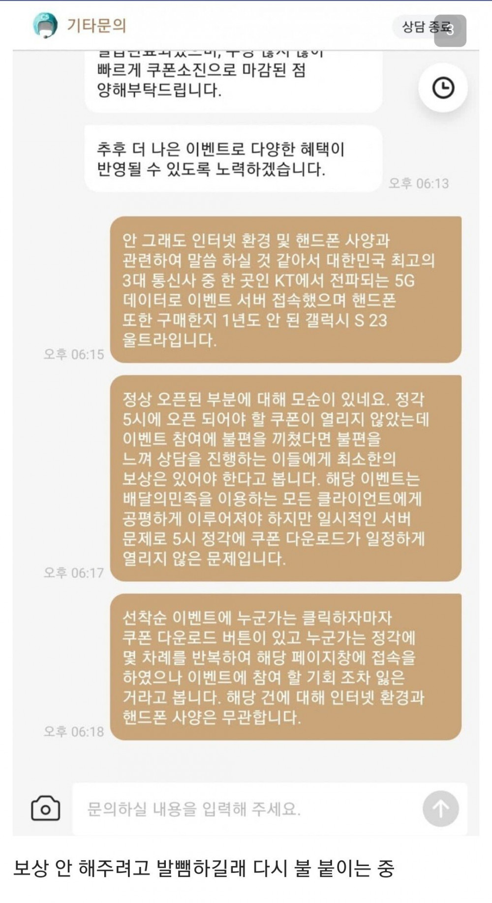 3. 쿠폰못받은 치갤러들이 상담원 괴롭히고 쥐어짜내면서
