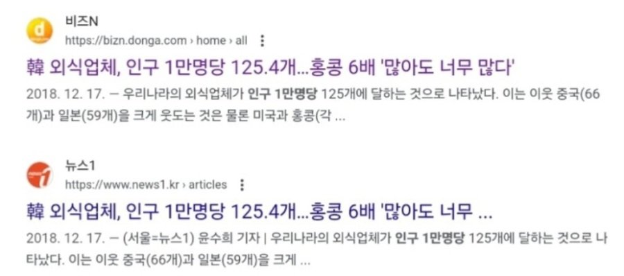 인구는 급격히 감소하는데 식당수는 더 늘어나고 있으니 ㅜ