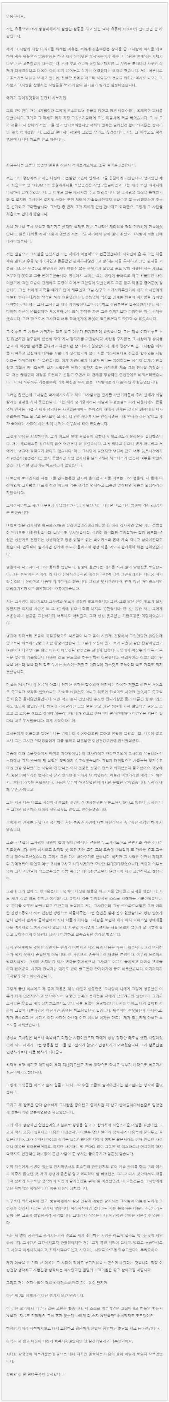 글쓴이는 "그 사람에 대한 이야기를 하려는 이유는 나에게 씻을 수 없는 상처를 줬기 때문"이라며 "그런 사람이 친절한 웃음을 지으며 사람들의 건강을 위하는 약사로 나오고 그를 찬양하는 사람들을 보며 가슴이 갈기갈기 찢기는 심정이었다"고 말문을 열었다.