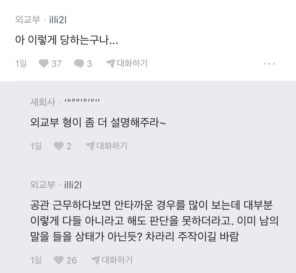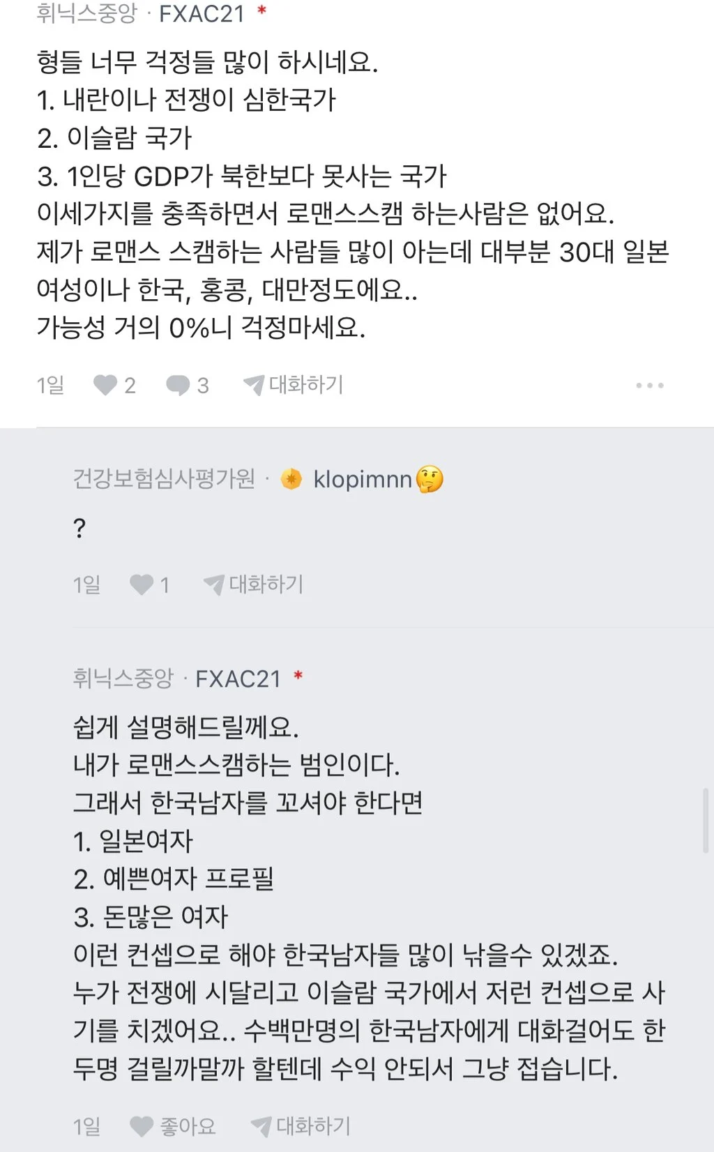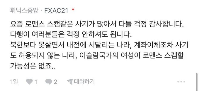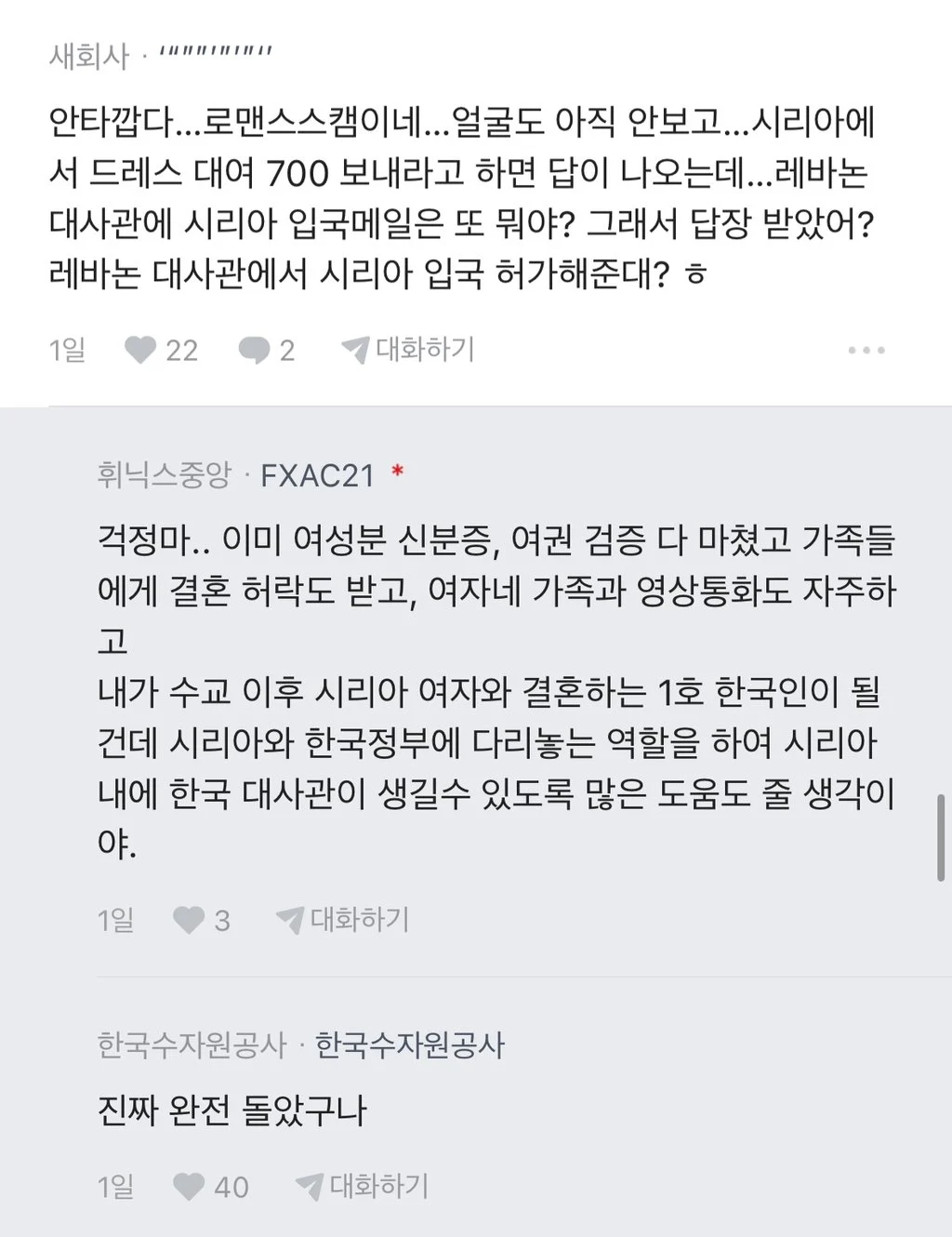 외교부 직원도 스캠같다고 말려보지만 굳건하다...