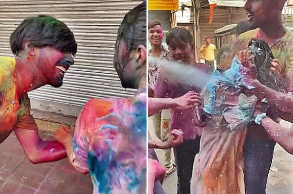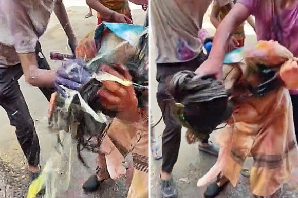 실제로 그가 공유한 동영상에는 다수의 남성들이 그의 머리에 달걀을 던지고, 강제로 껴안거나 몸을 만지며 물감을 뿌리는 모습이 담겨 있었다. 피해 여성이 비명과 몸부림으로 저항했지만 소용 없었다. 집단 희롱에는 어린이 등 미성년자까지 가담했다.