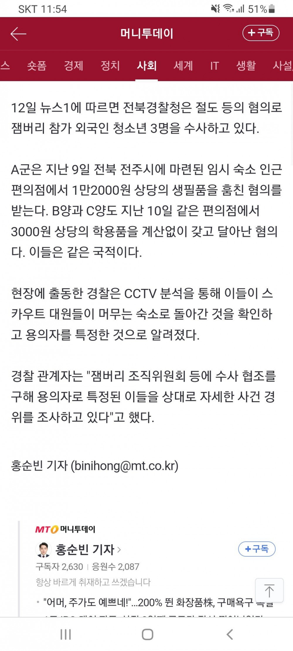 잼버리 외국인 대원 3명, 편의점서 물건 훔쳐