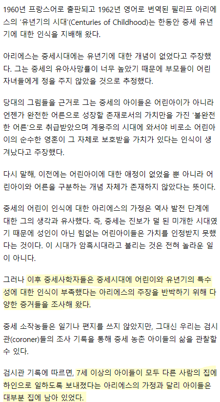 39;어린이 보호 개념은 근대의 발명품이므로 다시 미개한 중세시대로 추락하지 않기 위해 사회 각계에서 꾸준히 노력해야 한다39;