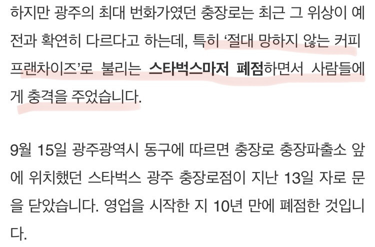 광주 충장로의 몰락.. 스타벅스도 폐점했다