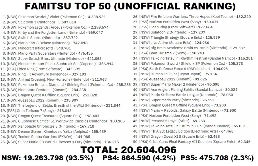 22년 일본 게임 패키지 판매순위&기종별 패키지 판매량 점유율
