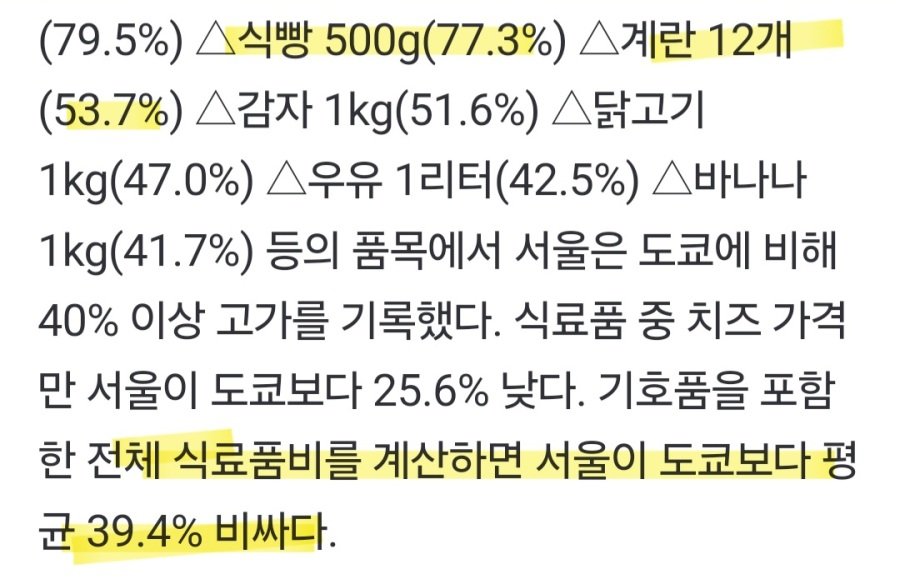 서울이 도쿄보다 식료품비 40% 비싸다.