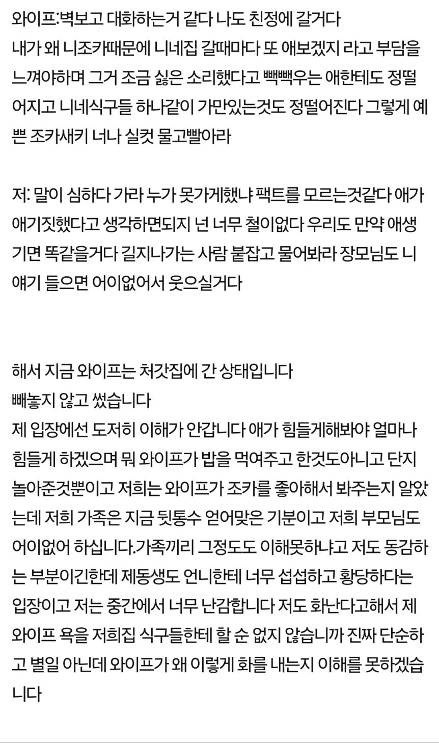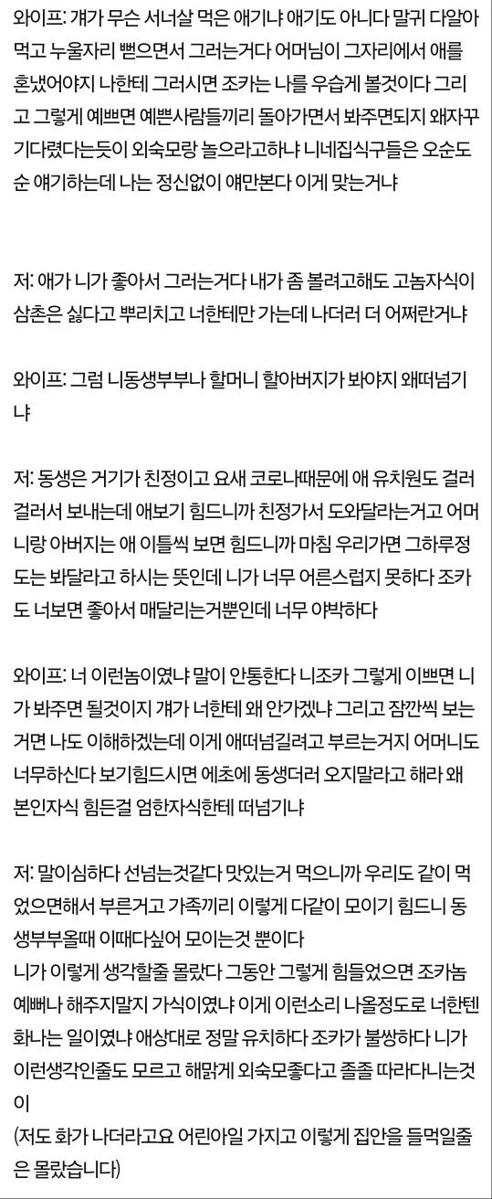 와이프가 제 조카에게 정떨어진다네요