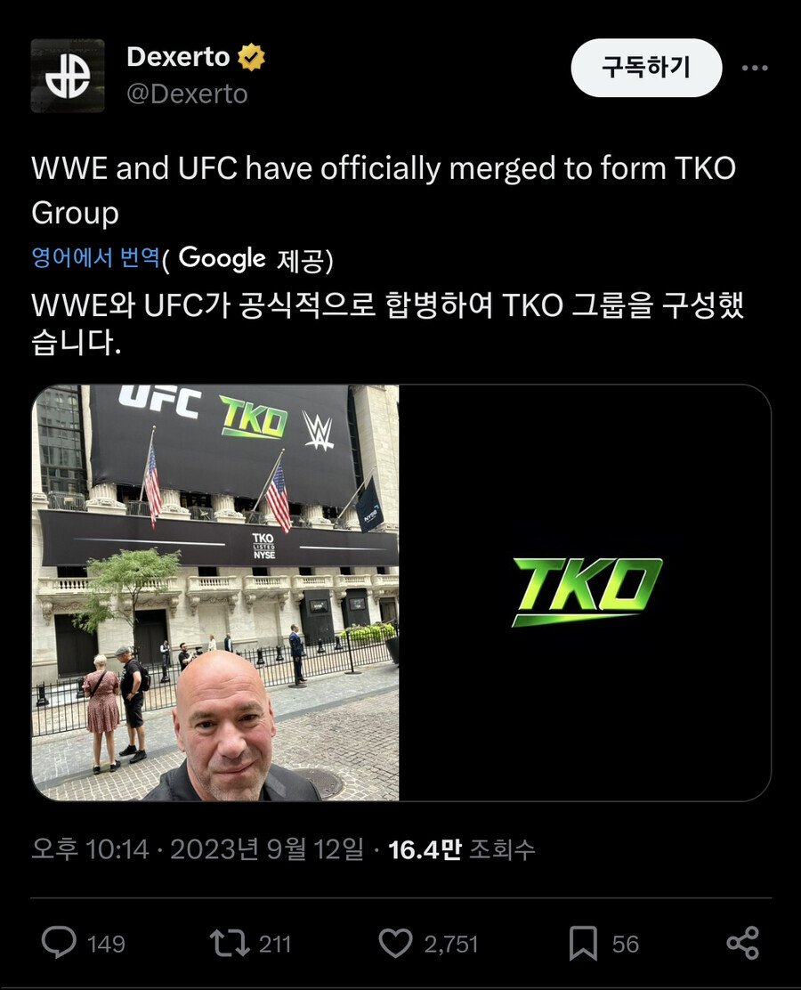 공식적으로 합병, TKO 그룹으로 출범함