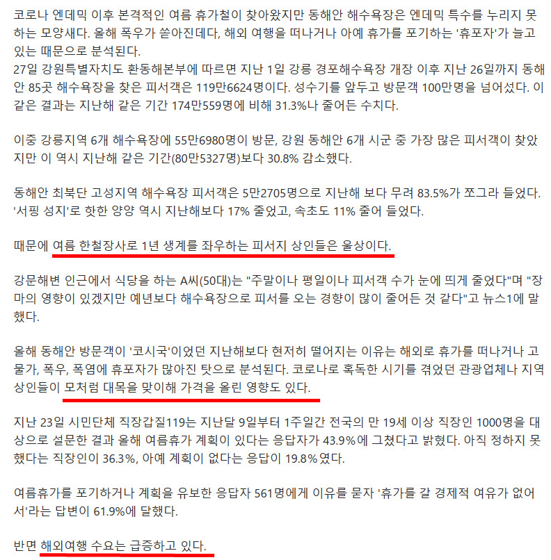 장사가 너무 안돼서 망할 위기라는 요즘 해수욕장