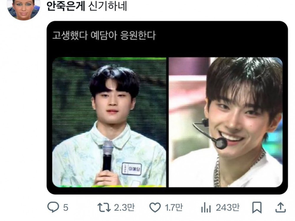 여초에서 기적의 성형 성공사례로 유명한 남자 아이돌