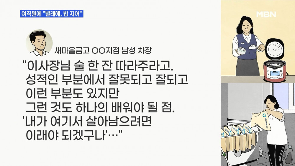 마을금고 여직원에 "빨래해..밥지어..여기서 살아남으려면 술따라"..왜?