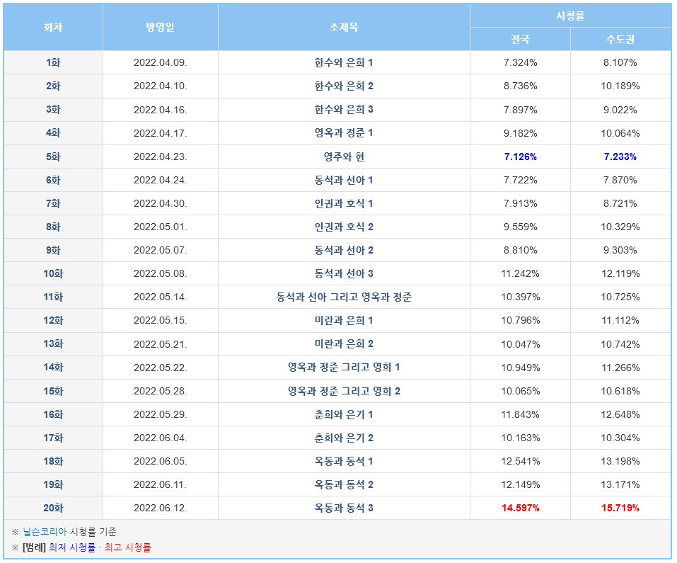 우영우는 ENA라는 듣보잡 채널에서 저정도 시청률 뽑은거....